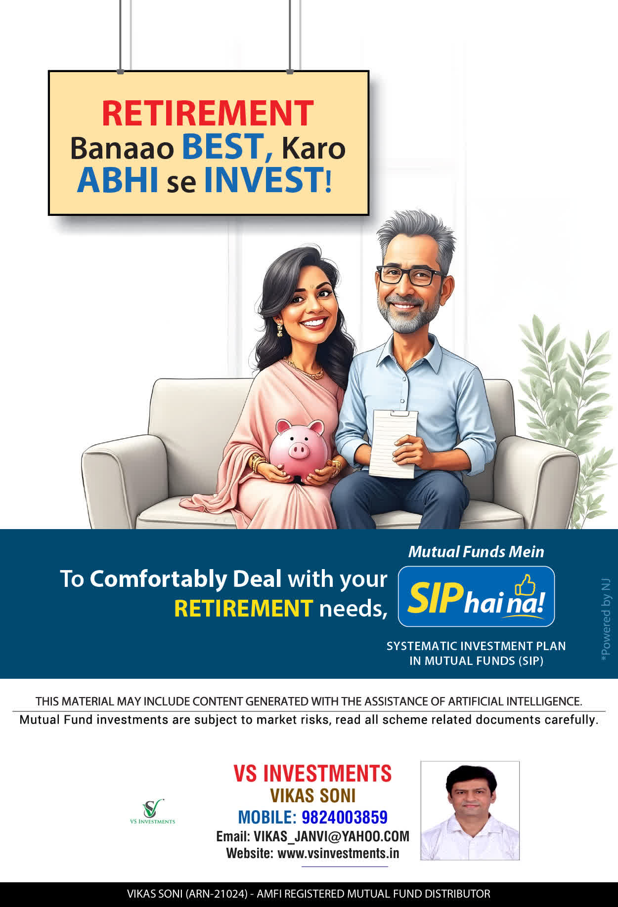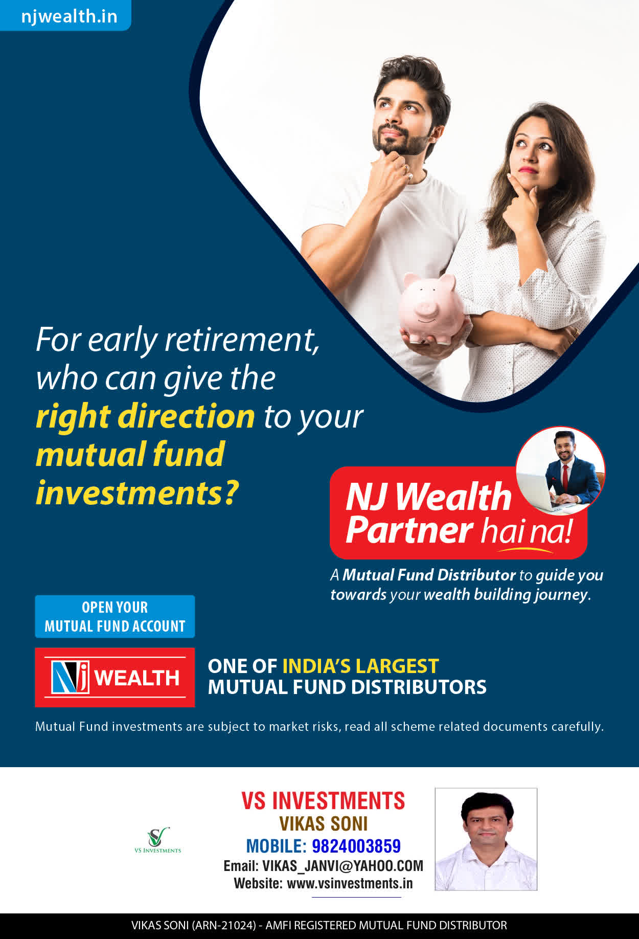 At VS INVESTMENTS, offer our services through personal counsel with each of our clients after understanding their wealth management needs. Our approach is to enable our client's to understand their investments, have knowledge of investment products and that they make proper progress towards achieving their financial goals in life.